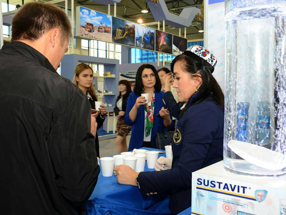 Мы подготовили стенд, отражающий основные моменты деятельности компании. Особенно нравится посетителям макет стакана с шипучей таблеткой, напоминающий о том, что наша компания первая в Узбекистане начала производство шипучих таблеток.